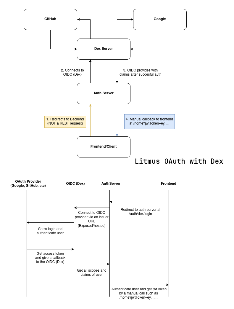 In order to provide enhanced and seamless login features, we wanted to integrate OAuth and other authentication mechanisms such as OpenID connect. To have flexibility, chaoscenter makes use of an additional component, Dex OIDC server.